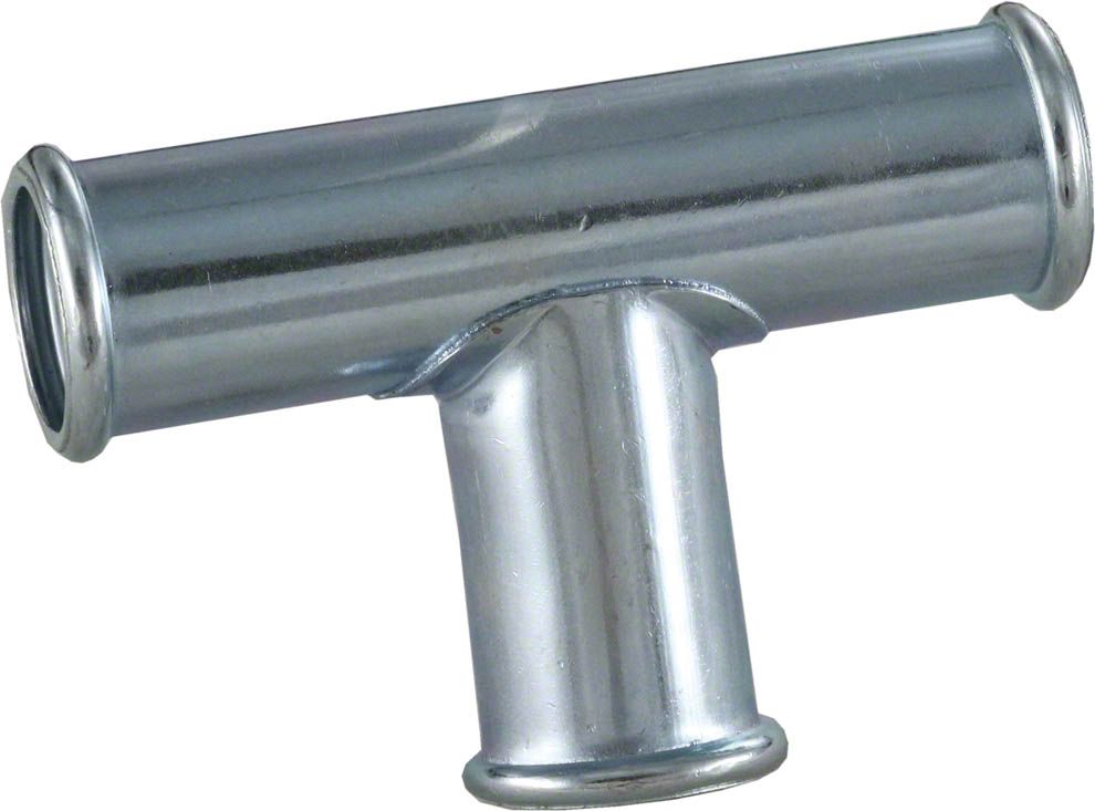Genuine Restoration Part. The Corvette Expansion Tank Tee Small Block is a reproduction part designed to match the original component, making it a perfect direct replacement for worn or damaged parts. This part offers OE-like performance and function, adding authenticity and value to your classic vehicle, making it ideal for both repair and restoration projects.