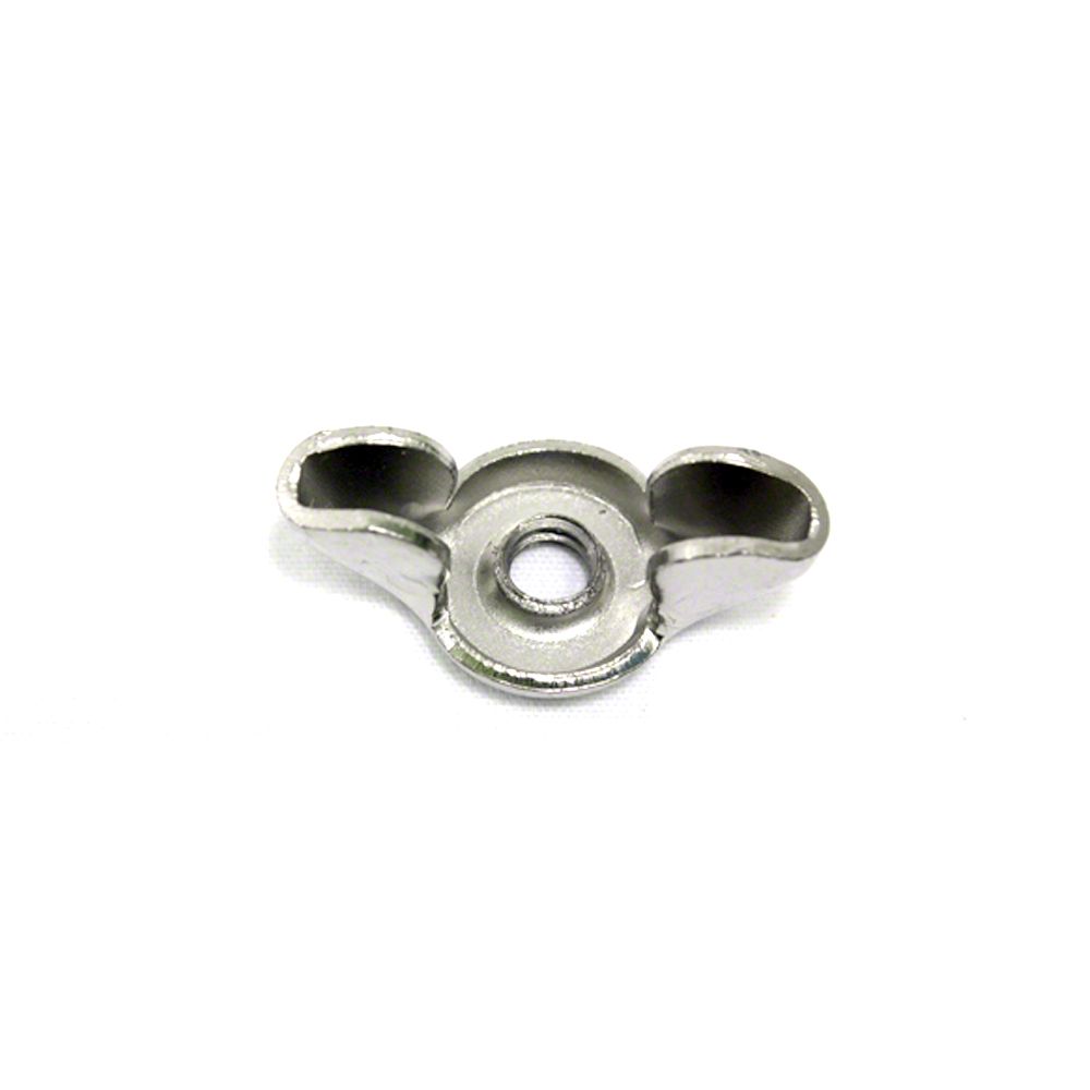 Construction and Appearance. This wing nut is made from high-grade steel with a durable chrome finish. It follows original factory specifications, ensuring it features the correct size, finish, and contours for a perfect fit.
