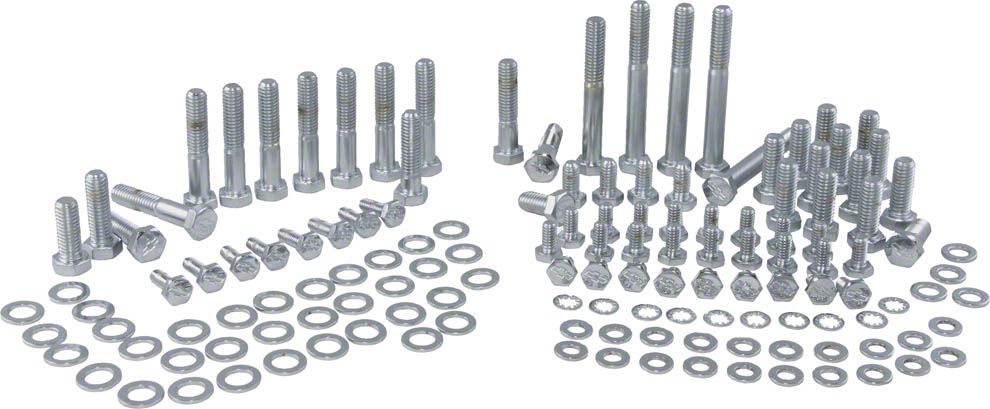Durable High-Strength Hardware. The Engine Bolt Dress-Up Kit Chrome Small Block is manufactured from strong materials designed to maintain durability and structural integrity under engine bay conditions. Built to handle heat and vibration, the Engine Bolt Dress-Up Kit Chrome Small Block provides dependable fastening performance while maintaining its polished appearance over time.