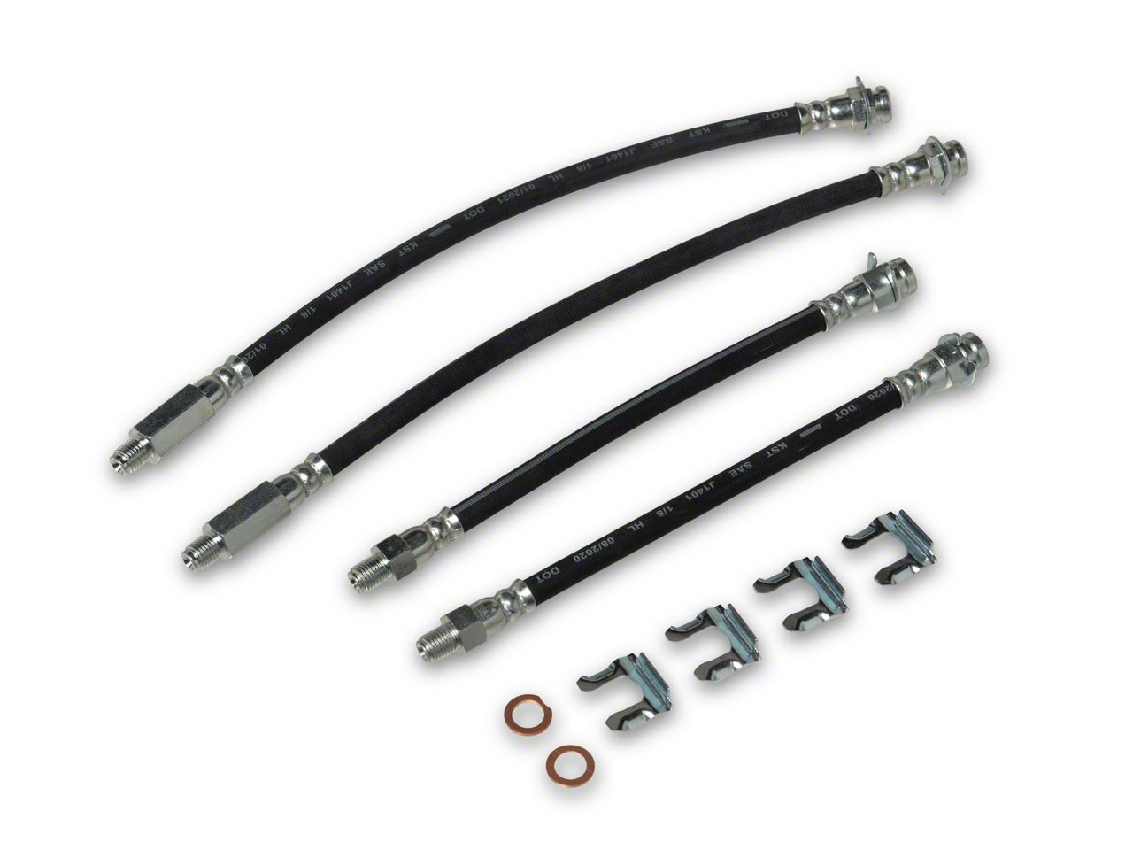 Installation. This hose set serves as a direct replacement for the stock brake hoses, allowing for a straightforward installation without modifications. Designed to fit seamlessly with the existing brake system, it helps restore proper brake function and fluid flow.