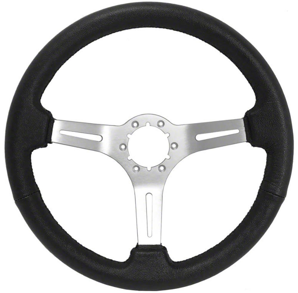 Construction and Appearance. Crafted from top-notch leather wrapping material, the S6 Sport steering wheel is built for durability and comfort. The black leather combined with brushed aluminum center spokes gives it a sophisticated appearance. What's more? Its corrosion- and rust-resistant composition ensures long-lasting performance, while the 2.50-inch depth is specifically designed for turn signal clearance.