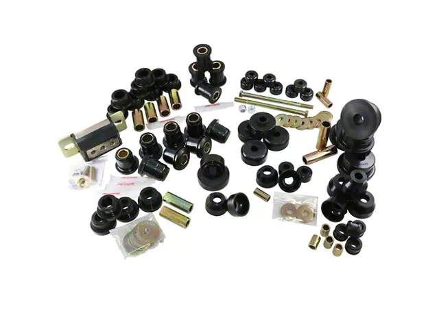 Construction and Appearance. Manufactured from top-notch polyurethane material, this bushing kit is built to endure rigorous running and weather conditions. The components feature pre-cut and precise measurements for an exact fit and are overlaid with a black finish for added durability and a sleek appearance. Meticulously manufactured in the USA, this kit meets or exceeds industry-leading quality and safety standards.