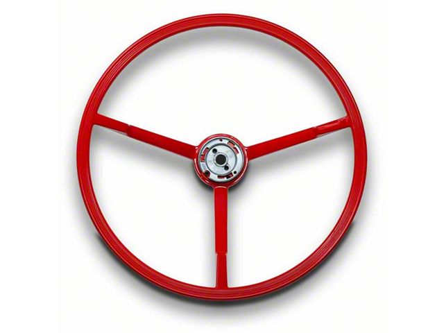 Many very nice '63-64 Full-Size Fords have cracked steering wheels. This is due to materials that didn't stand the test of time in even good conditions. For years restorers had few choices: do nothing and live with the cracks, attempt to repair the cracks and repaint, or send their wheel off for an expensive restoration. This fine reproduction is the answer. It's finished in high-gloss red, will work with original and correct reproduction components, and can be painted to match other interior colors. If you choose to paint we recommend carefully preparing for maximum adhesion, use a high-quality paint, and giving it a good coating of clear after applying the color. This will help it resist wear and chipping.