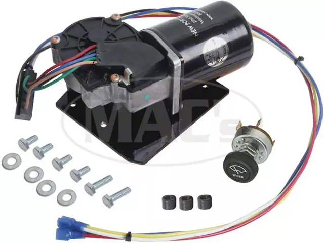 This aftermarket kit includes a brand new 2-speed motor, a rotary switch, the necessary wiring & complete instructions. It mounts in the factory stock location, hooks up to the factory linkage & rest assured, it has been engineered to be as easy as possible to install. The next time you get caught in the rain you will be prepared, not scared! Find all your windshield washer and wiper needs for your classic 1963, 1964, or 1965 Ford Falcon, your 1963, 1964, or 1965 Ford Ranchero, or your 1963, 1964, or 1965 Mercury Comet at the lowest price guaranteed, at MAC's Antique Auto Parts!