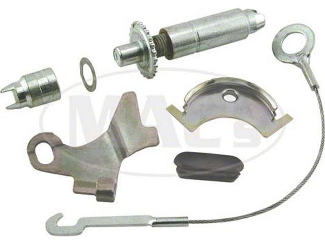 The kit contains 1 cable, 1 guide, 1 lever, brake shoe adjuster and hole plug. One kit does one wheel. It is for the left (driver) side only.
