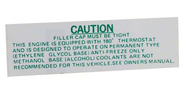 This Corvette reproduction expansion tank caution decal has been manufactured to original factory specifications using today's modern manufacturing techniques. You will find the fit, finish and function will work superbly for your restoration. In addition, using a reproduction expansion tank caution decal decal from Eckler's will add authenticity and value to your Corvette.