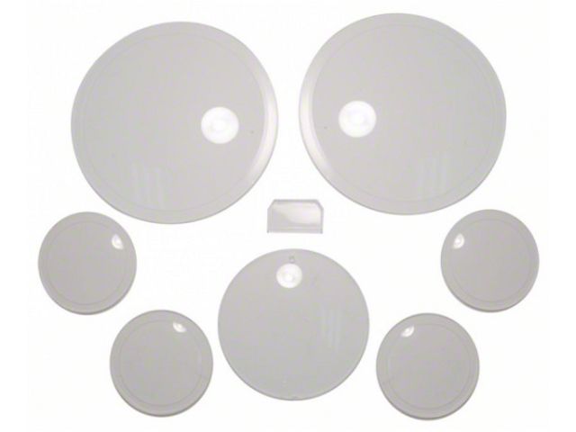 Construction and Features. Crafted from durable plastic, this lens set includes covers for the small gauge, clock, trip odometer, and speedometer. Made in the USA, it replicates the original design with precision, ensuring a factory-correct appearance and fit.