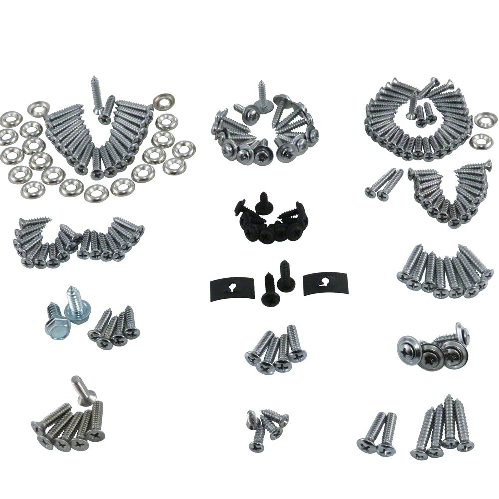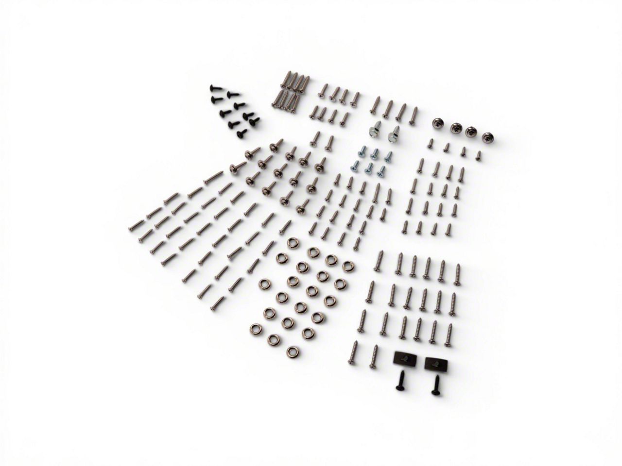 Interior Screw Set for Coupe Vehicles. The Interior Screw Set for Coupe is a comprehensive 125-piece kit designed for a wide variety of interior components. It includes screws for critical parts such as sun visors, sill plates, door panels, seat bumpers, and many more. This set is ideal for repairs and restorations, ensuring that you can maintain the integrity of your vehicle with parts that fit seamlessly into the original design. It is a must-have for any automotive enthusiast looking to keep their classic car in top condition.
