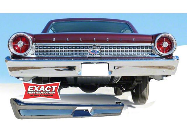 One of the most striking features of a '63 Galaxie is it's caboose. The jet-engine inspired taillights, checkerboard panel in between them, and big shiny bumper let people know they've just been passed by something special. Don't let a weathered, rusty, or damaged bumper drag the looks of your Galaxie down. Now you can get an all-new bumper that is a very nice reproduction for a lot less than a rechrome job on an original will cost, even with the shipping charge. It's big, so an oversize charge is required, but generally this method of shipping is a litte easier on the part being shipped!
