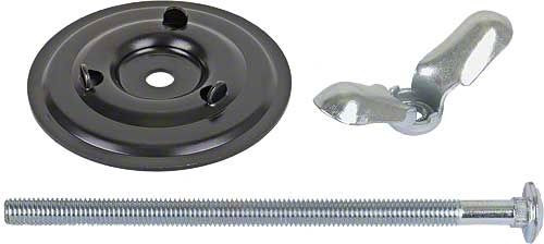 Kit includes a cadmium-plated wing nut, zinc-plated J hook mounting bolt, & painted mounting plate. Used from 1964-1/2 through the early part of 1965.