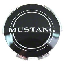 - Plastic - For Wheel Cover Or Spinner - Black Background With Chrome Mustang Lettering & 2 Chrome Rings
