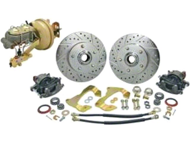 Kit includes rotors, brackets, calipers, bearings, seals, dust caps, hoses, booster, master cylinder and proportioning valve. Customer will need to use their own spindles and this does not come with the brake lines