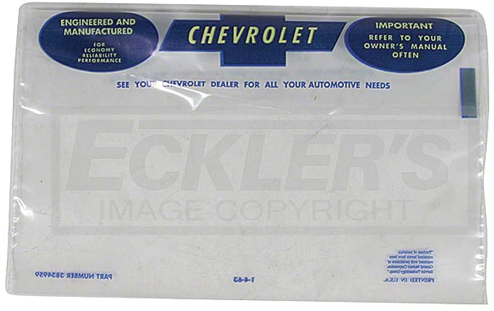 Eckler's no longer carries the Owners Manual Plastic Bag,64-66. Please check out Chevelle/Malibu Gifts & Lifestylefor an updated selection.