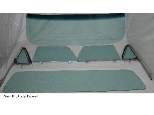 Complete Glass Package with Post Assembled Side Glass and Deluxe Rear Back Glass; Green Tinted and Shaded/Original Green Tint (64-66 C10, C20, K10, K20)
