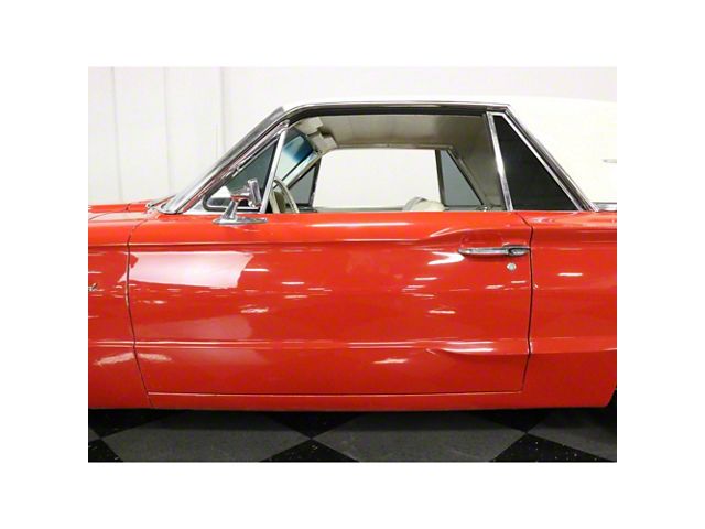 Door glass for your 64-66 Ford Thunderbird. The door glass comes with your choice of clear, green tint or light grey tint. Fits 2door hard tops model #63A/B and convertibles on the left or right hand side.