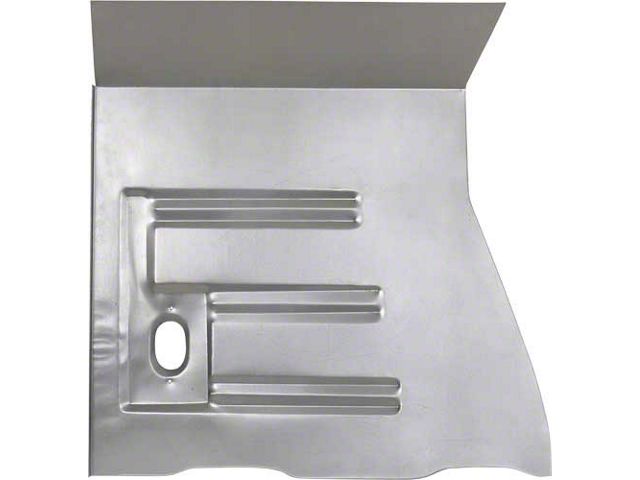 The 1961-1966 front floor pans repair the area under the driver and front seat passenger's feet. The panels extend 5 inches up the firewall and are stamped with stiffening grooves like the originals.