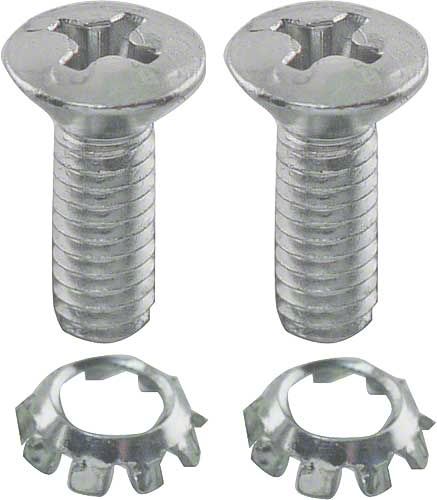 Includes 2 chrome oval-head Phillips screws and 2 external tooth lock washers.