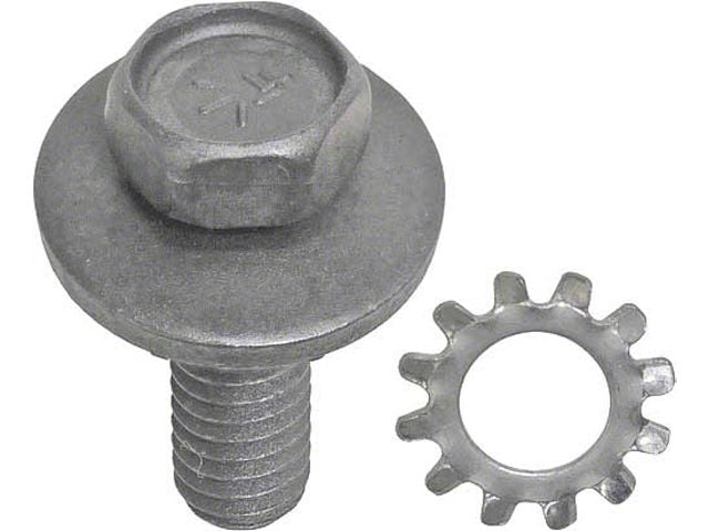6 faceted-flange-head black oxide finish bolts & 6 external-tooth lock-washers. 1 set does both sides.