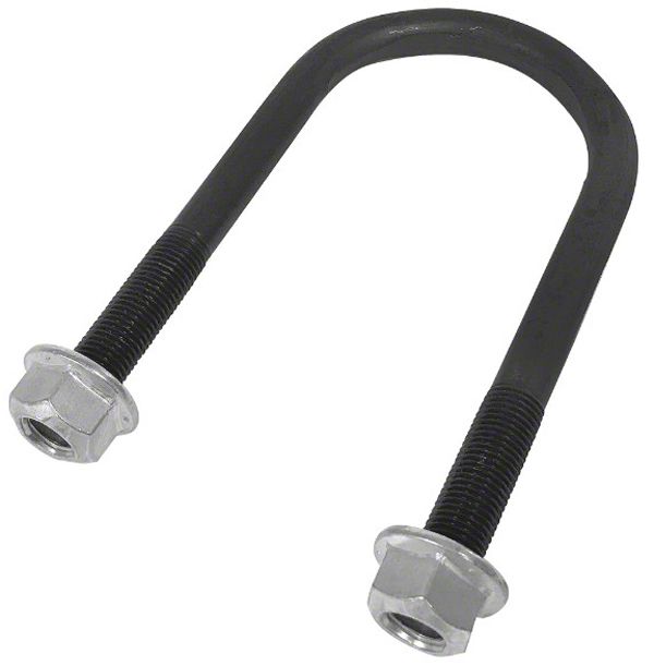 This U-bolt is designed to be an exact reproduction of the original, but 1/2" longer. The added length is required when using both 5-leaf springs and Traction Master or other traction bars together, as stock bolts will not provide adequate thread engagement. This is not your average economy U-Bolt, as it has the correct swedging to provide a flat mounting surface against the axle housing. Concours flanged mounting lock nuts are included for a factory appearance.