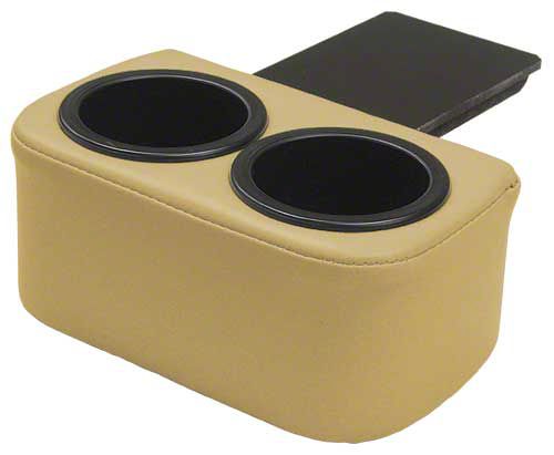 Our classic cars all suffer from the same problem - no cup holders. Plug & Chug makes the that problem disappear. With room to hold 2 drinks, you & your better half can enjoy the beverage of your choice without having to hold it in your lap. Covered in soft vinyl in a variety of colors, it will match almost any interior.