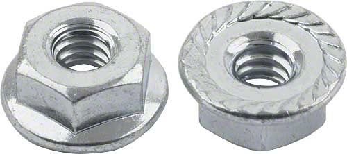 8 cadmium plated hex nuts with oversized flanges.