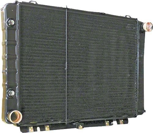 Late 64-66 Radiator, requires 90 degree tube with inverted flare fitting for cooler lines, 17" core. THIS ITEM HAS ADDITIONAL SHIPPING CHARGES DUE TO HEAVY WEIGHT OR OVERSIZE DIMENSIONS.