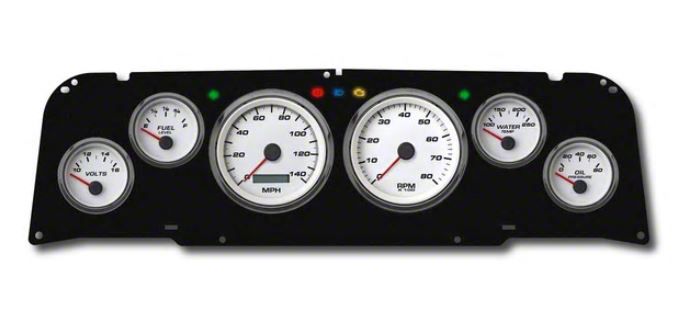 New Vintage USA 6 Gauge Performance Series Package - 140 MPH Programmable Speedometer with Tachometer, Oil Pressure, Water Temp, Fuel and Volt Meter - White (64-66 C10 Pickup; 64-66 C20 Pickup; 64-66 K10 Pickup; 64-66 K20 Pickup)