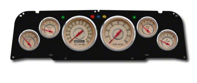 New Vintage USA 6 Gauge Woodward Series Package - 140 MPH Programmable Speedometer with Tachometer, Oil Pressure, Water Temp, Fuel and Volt Meter - Beige (64-66 C10 Pickup; 64-66 C20 Pickup; 64-66 K10 Pickup; 64-66 K20 Pickup)