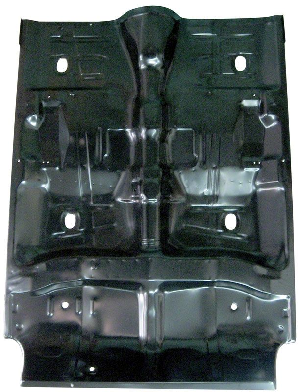 Complete OE style coverage for replacement of entire floor. This one-piece pan has all the shapes, contours and holes as original. Includes floor pan braces, inner rockers and seat belt provisions already welded in place. Loose brackets for rear seat hol