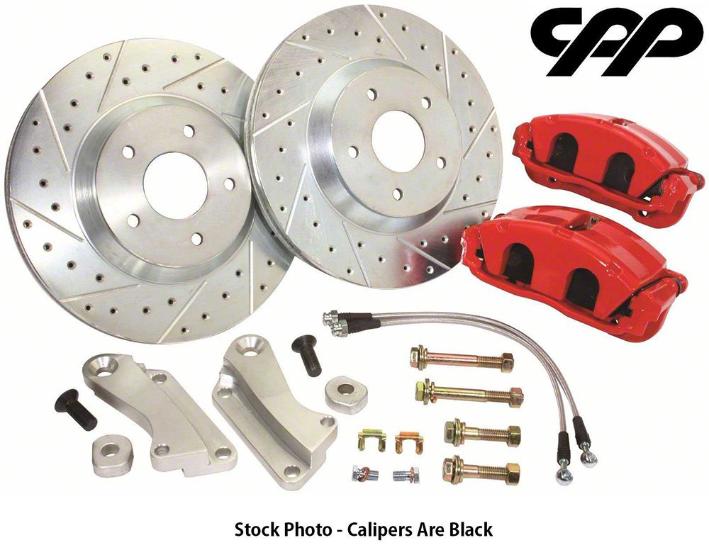 The front system uses a 13" cross-drilled, gas slotted and zinc washed rotor, mounted to a 2024 T6 billet aluminum CNC machined anodized hub and a PBR C15 caliper that attaches to the spindle with CPP custom caliper mounting brackets. PBR C15 calipers have twin 52mm pistons and a larger brake pad surface area that offers about 60% more st