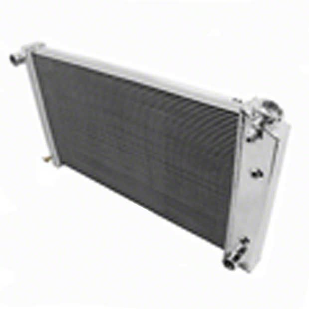 Your 1964-1967 El Camino can get hot...really hot. Bumper to bumper traffic, blistering summer days, and daily driving can add up. The factory copper and brass radiators were barely satisfactory at transferring heat which is why Chevy engine will overheat. Why take chances with your valuable Chevy engine? Champion Aluminum Radiators from Ecklers Chevelle provide outstanding perofrmance at an excetional value. Aluminum is a far superior to the original copper and brass because it dissipates heat and cools down much more quickly. That means better protection for your investment. Champion's aluminum radiator is 50-75% lighter than your factory copper and brass radiator unit and cools up to 40% better. Plus, the the incredible price makes this Champion radiator an exceptional value. Trust The