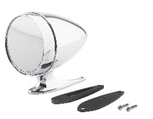 Used as a replacement or an upgrade. This bullet "Rotunda" style mirror looks great from any angle. MACS offers this side mirror for your 1964-1968 Mustang. Finished in a bright chrome finish, with many internal upgrades, and mounting pad and installation hardware included. This mirror is the cream of the crop.
