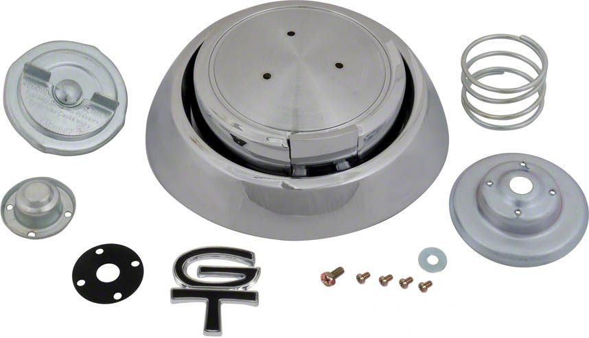 This gorgeous pop-open gas cap comes with everything you'll need to install it and includes a black paint accented GT emblem.