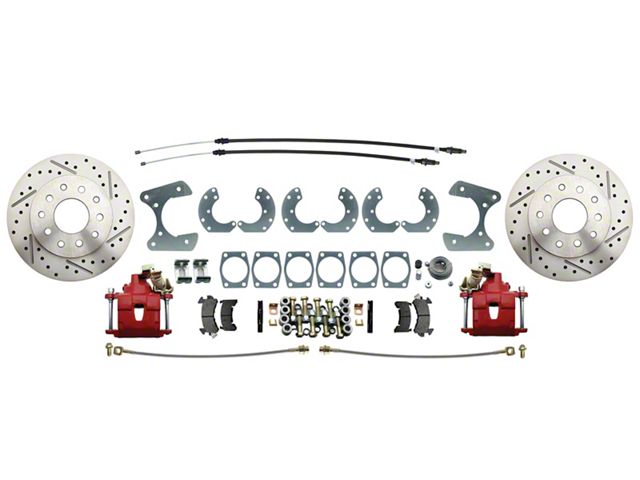 The DBK9 provides an easy to install, bolt on solution for upgrading your pre-1980 Ford passenger car 9" rear-end to disc brake performance. MBM's kit is unique in that it provides all the brackets and flanges that fit the three most popular sizes of the 9" rear end (3-3/8" x 2", 3-1/2" x 2-3/8", 3-9/19" x 2"). This eliminates all guesswork when purchasing and installing the kit. The DBK9 comes in both standard and high performance models. The high performance LX kits upgrade to cross-drilled and slotted rotors and stainless steel braided brake lines.