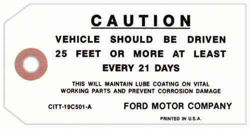 Ford Mustang Tag - Caution - Vehicle Should Be Driven...
