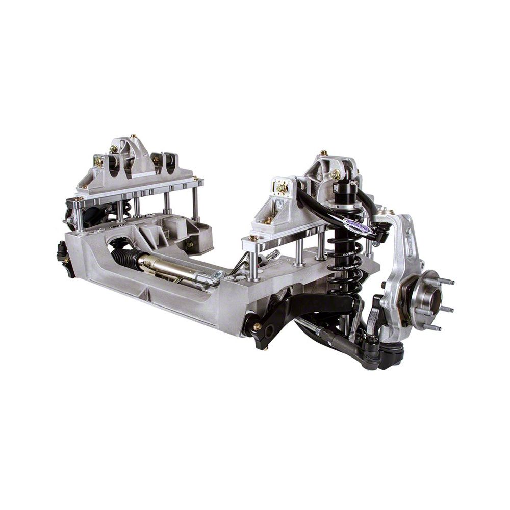 All aluminum front suspension system for 1964.5-1970 Mustangs featuring Detroit Speed's unique suspension geometry with 6" of suspension travel for the ultimate in ride and performance.