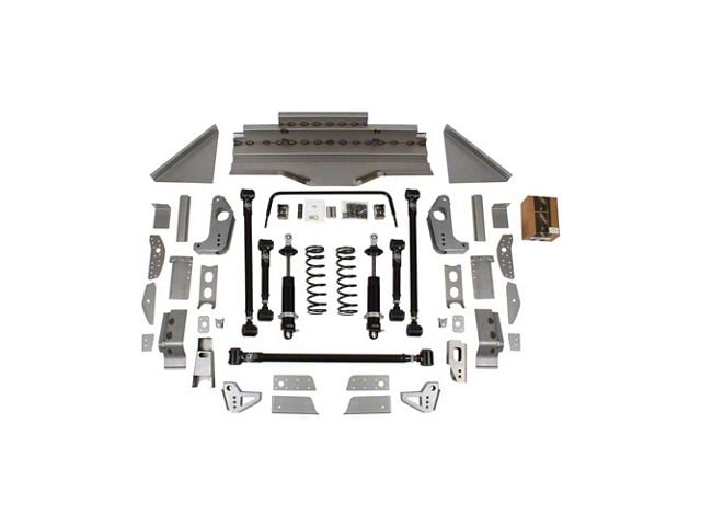 This is a great way to upgrade from original leaf spring suspension. Detroit Speed's exclusive 4-link geometry design is uncompromised to achieve the best possible handling. The Detroit Speed "Swivel-Link" (Patent No. 7,398,984) allows the suspension to fully articulate with smooth solid motion with no binding. The best feature is that this is achieved without heim-joints. Heim-joints are noisy and wear out fast. The Detroit Speed, Inc. QUADRALink utilizes tuned high-durometer rubber bushings (in place of heim joints or squeaky urethane bushings). The long upper links provide great pinion and u-joint angle control. Contrary to competitors' kits, Detroit Speed's kit utilizes a panhard rod that provides precise and effective rear axle lateral location during hard co