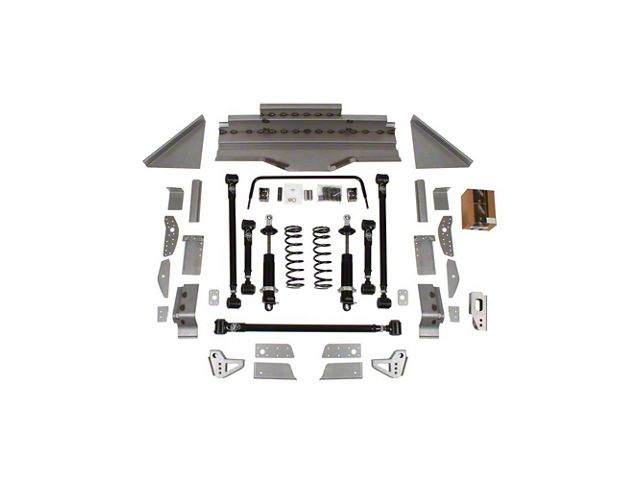 This is a great way to upgrade from original leaf spring suspension. Detroit Speed's exclusive 4-link geometry design is uncompromised to achieve the best possible handling. The Detroit Speed "Swivel-Link" (Patent No. 7,398,984) allows the suspension to fully articulate with smooth solid motion with no binding. The best feature is that this is achieved without heim-joints. Heim-joints are noisy and wear out fast. The Detroit Speed, Inc. QUADRALink utilizes tuned high-durometer rubber bushings (in place of heim joints or squeaky urethane bushings). The long upper links provide great pinion and u-joint angle control. Contrary to competitors' kits, Detroit Speed's kit utilizes a panhard rod that provides precise and effective rear axle lateral location dur