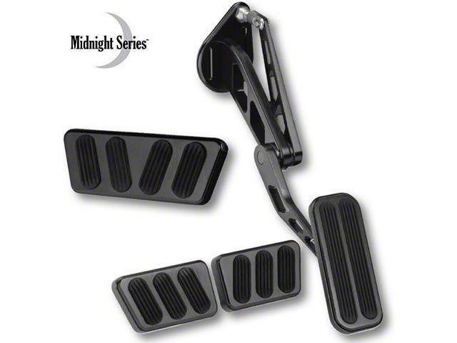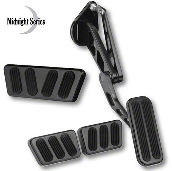Replace your Mustang's hard/worn out throttle linkage and pedal pads with Lokar's Midnight Series billet aluminum throttle assembly and pedal pads. They are designed as direct replacements for the stock assemblies when paired with a Lokar throttle cable and brackets. Lokar's billet aluminum gas pedal assemblies are ball-milled and spring-loaded like the OEM design and their removable lower arm is splined for versatility in mounting them to the right or left of the mounting bracket. The upper arm is a one-piece design, and the shaft and arm are also one piece, requiring no pins. Add Lokar's matching Midnight Series billet aluminum brake and clutch pedal pads to give that finishing touch to your ride(sold separately). These are black, ball-milled brake and clutch pedal pads