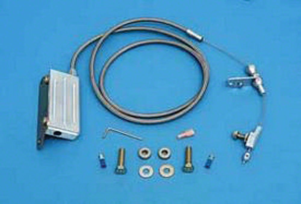 Lokar’s TH-400 Electric Kickdown is cable-operated. Electric switch is housed in a billet aluminum box that mounts with transmission pan bolts.* Kit includes “U-Cut-to-Fit” stainless steel outer housing designed with a specially extruded liner for extended life of the cable, aluminum fittings and stainless steel inner wire and stainless mounting bracket. Mount the kickdown with our Stainless Steel Carburetor Bracket and Return Springs (sold separately). This design eliminates mounting unsightly electrical switches on carburetor, manifold, or near throttle pedal. Kickdown available in black housing upon request. Complete installation instructions included in kit.