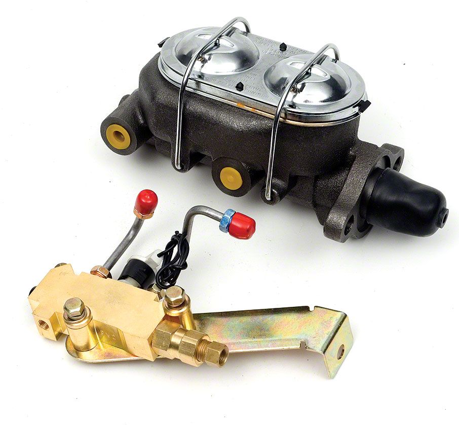 This disc master cylinder with AC Delco type proportioning valve is just what you need to finish the disc brakes on your car. Our unique setup includes a master cylinder bore adapter to allow you to use it for manual or power disc applications. Our master cylinder has a 1.00" bore diameter which creates more line pressure for manual brake applications and makes your power brake application feel much better than larger bore setups. Proportioning valve utilizes a lower pressure shut off valve for safety, should line pressure ever become compromised. Kit includes low pressure warning light wire and plug. CA Residents: