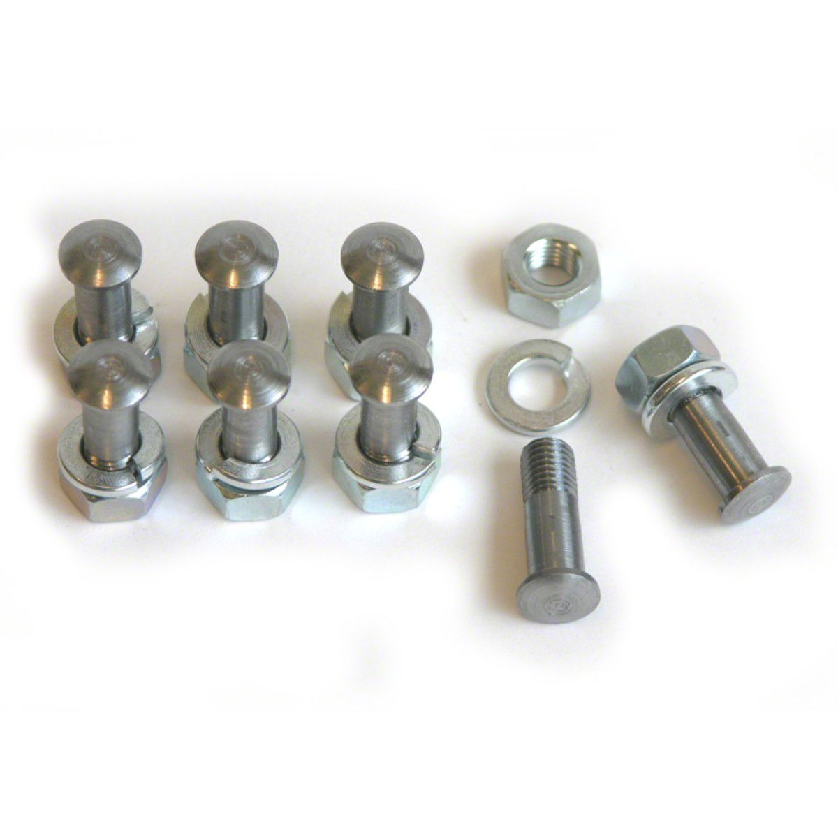 Know you should replace your upper ball joints but don't like the idea of bolting them in? From the factory, all upper ball joints were riveted into place. We do offer the rivets, but you should really enlist the services of a good machine shop to install them. This set of bolts/washers/nuts will look like the factory-installed rivets from above but you can install them in your garage. They are for use with factory style ball joints, or those made by TRW. Some aftermarket ball joints, including newer Moog versions have different size holes which causes installation issues.