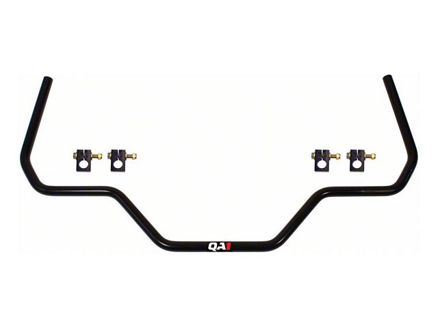 QA1 Rear Sway Bars are manufactured from heavy duty solid-core(1045) cold formed steel for maximum strength. Precision CNC forming ensures proper fitment for a true bolt-on installation. A gloss black powder coated finish is applied for lasting durability and corrosion resistance. They include greaseable graphite polyurethane bushings, U-bolts and high quality plated hardware