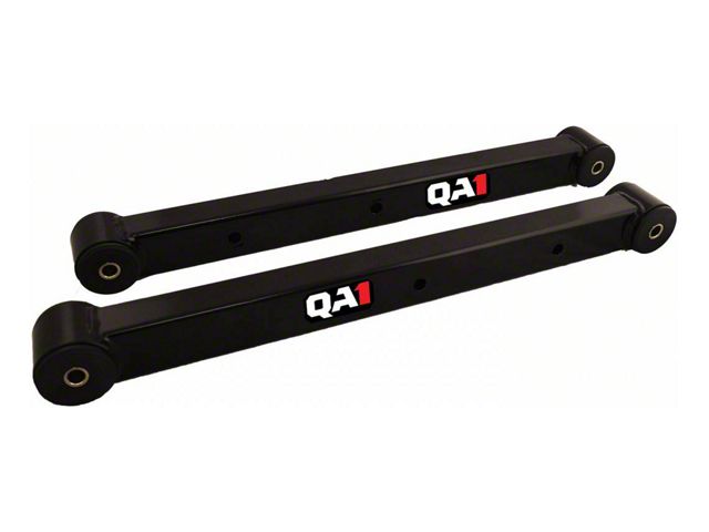 All upper tubular and lower boxed trailing arms use polyurethane bushings on both ends, while upper adjustable and lower tubular trailing arms use a spherical ball or rod end assembly on the chassis end to eliminate bushing bind, allowing the suspension to move smoother for better control. This keeps the tires planted firmly on the ground for improved traction and a more predictable, better handling car. For a long-lasting finish, tubular and boxed trailing arms are powder-coated gloss black, while the adjustable arms are zinc plated and anodized. Boxed Trailing Arms are constructed from 0.120'' wall cold rolled steel tubing for maximum strength and flex elimination. These trailing arms have fluted, greasable polyurethane bushings, which are superior to the stock rubber bushings. T