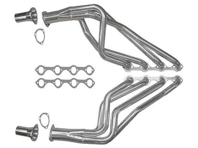 Patriot Exhaust Headers are made using mandrel bent mild steel tubing with surface machined, thick steel flanges. These headers look good & are built to last. These are ceramic coated so they will look great for years. They will not discolor as chrome & other finishes do. We also have them available not coated for those who prefer their own coating, painting, or wrapping. All Patriot header kits come with installation hardware, collector reducers, gaskets and instructions.