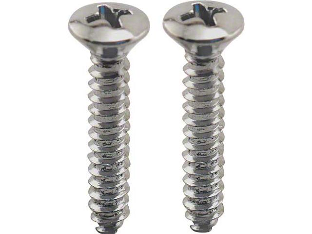Includes 2 chrome, countersunk, oval Phillips head screws.