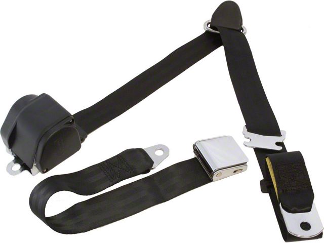 Add a little safety to your classic Mustang without sacrificing its classic look with these 3-point seat belt kits. Available in 10 colors to match a variety of Mustang interiors, these belts look right at home with chrome aviation-style buckles and chrome belt ends. Inertia design retractors lock during sudden stops or accidents, and are color matched to the belt webbing or your choice. The buckle end of each belt consists of 28 inches of webbing and the retractor side has 110 inches of webbing after sewing. Grade 5 hardness mounting hardware and a detailed installation manual are included in this package that is complete for 2 seats. This Mustang seat belt kit meets or exceeds federal motor vehicle safety standards.