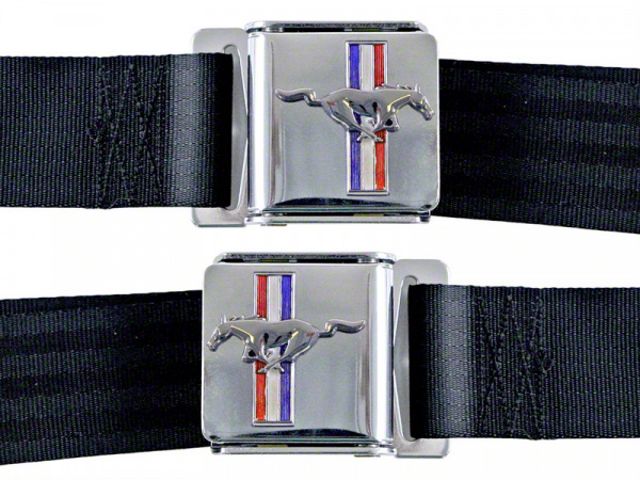 Ford Mustang seat belt set with mustang emblem aqua*Fits 1964 to 1973 Ford Mustang