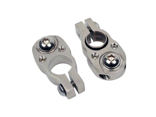 These top mount battery terminals have a satin silver finish. These top mount terminals allow battery cables to be attached to top post batteries.