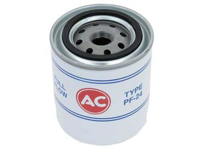 Here is a way to get an original look without breaking the bank. The included clear decal matches the design of original AC PF24 oil filter graphics. This decal is to be applied on the included plain white quality oil filter which fits on engines originally equipped with a AC PF-24 filter. The end result is it looks like you spent big money on a reproduction oil filter. Many who do tend to change their filter less frequently resulting in less protection for their engine. Order this great decal and filter and make that show judge smile!
